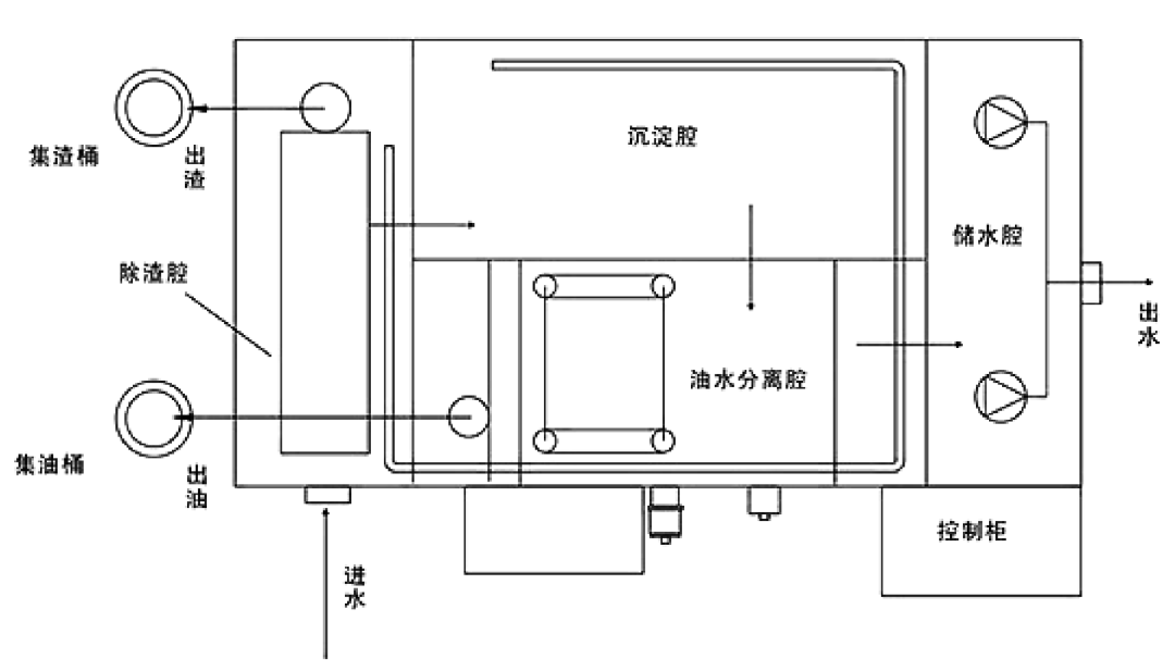 ◇污水流進油水分離腔,在此進行油水分離;
